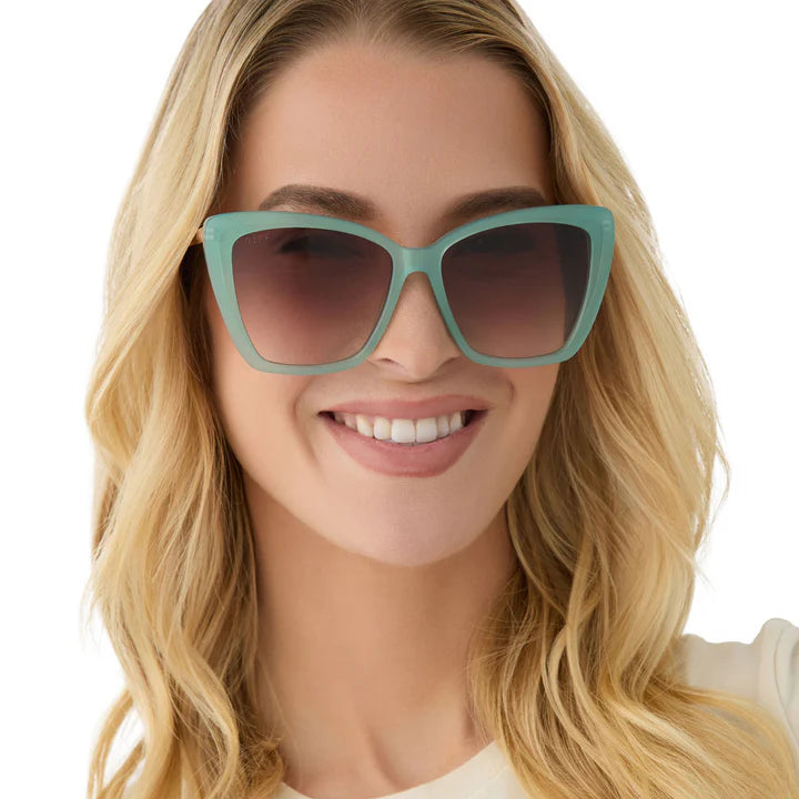 Our Becky II is for the life of the party! Dress to impress in these oversized shades, featuring a flirty cat eye, luxe metal temples, and endless glamour.