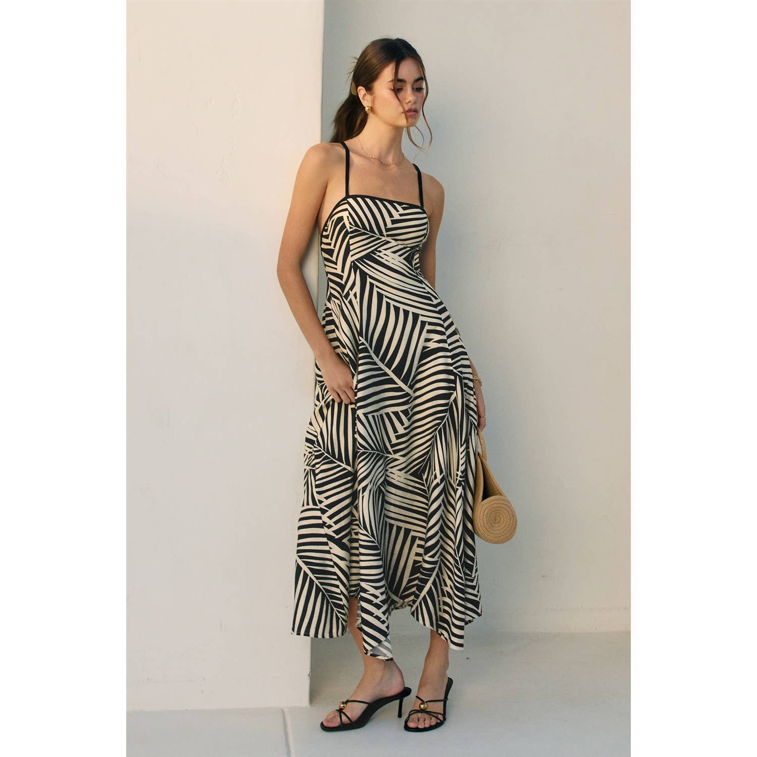 This striking Mango Grove dress features a clean straight neckline accented with contrasting trim, paired with adjustable shoulder straps that tie in a criss-cross design at the back for a customized fit. The signature handkerchief hem creates an elegant, flowing silhouette, while an invisible center back zipper ensures seamless closure. An elastic back waist provides comfort and shape retention throughout the day. Crafted from a luxurious viscose-nylon blend shell with polyester-spandex lining at the bodice and partial skirt, this piece combines breathability with structure. The dress is partially lined for comfort and drape, with no pockets.