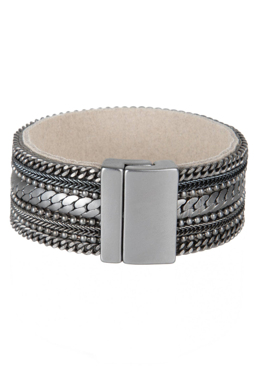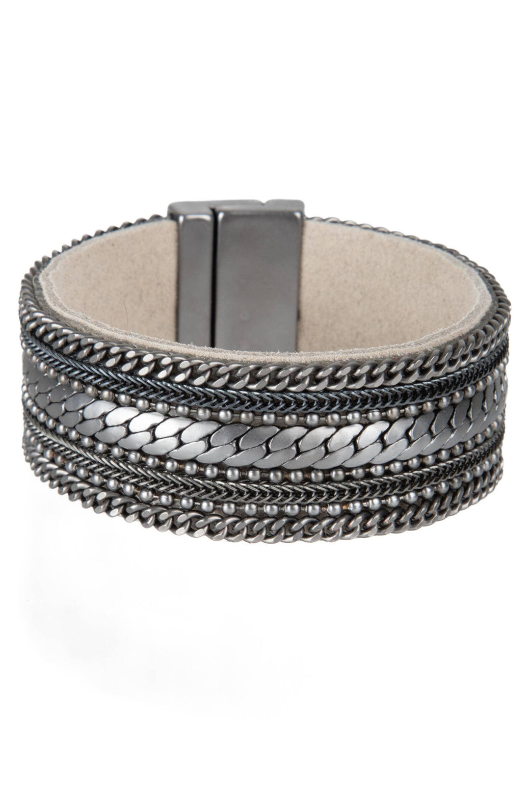 Upgrade your style with our Dainty Chains Leather Bracelet. A unique gold chain collection intertwines to create a striking, timeless design. This bracelet is perfect for everyday or elevated wear and is backed with soft, genuine leather for comfort.