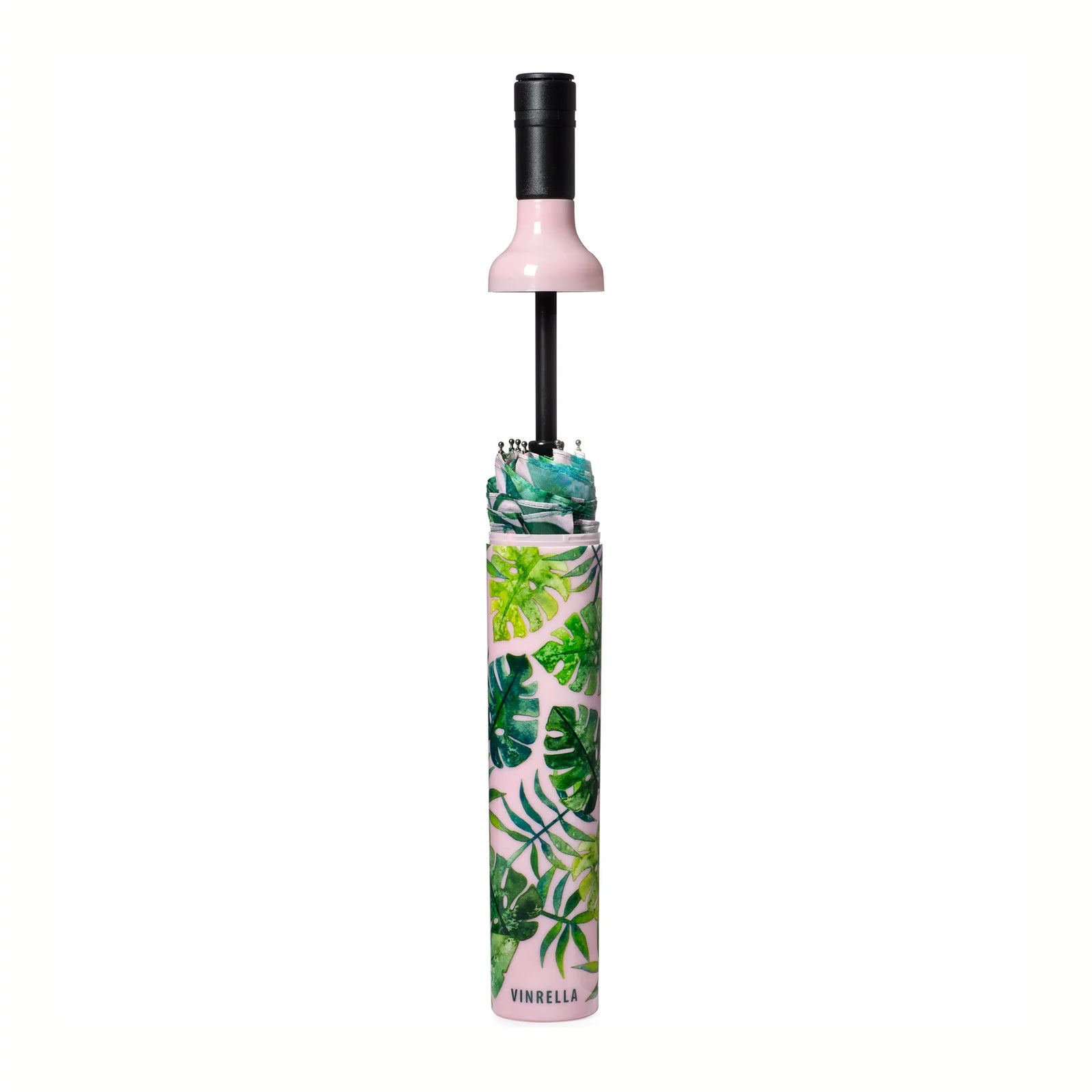 Introducing our collaboration with artist, Nicole Aubrey , with this bold botanical print created from her painting. We think this one evokes moments of a peaceful island vacation. All Vinrella wine bottle umbrellas have a no-drip design to seal your wet umbrella in the bottle and protect your purse, backpack or briefcase.